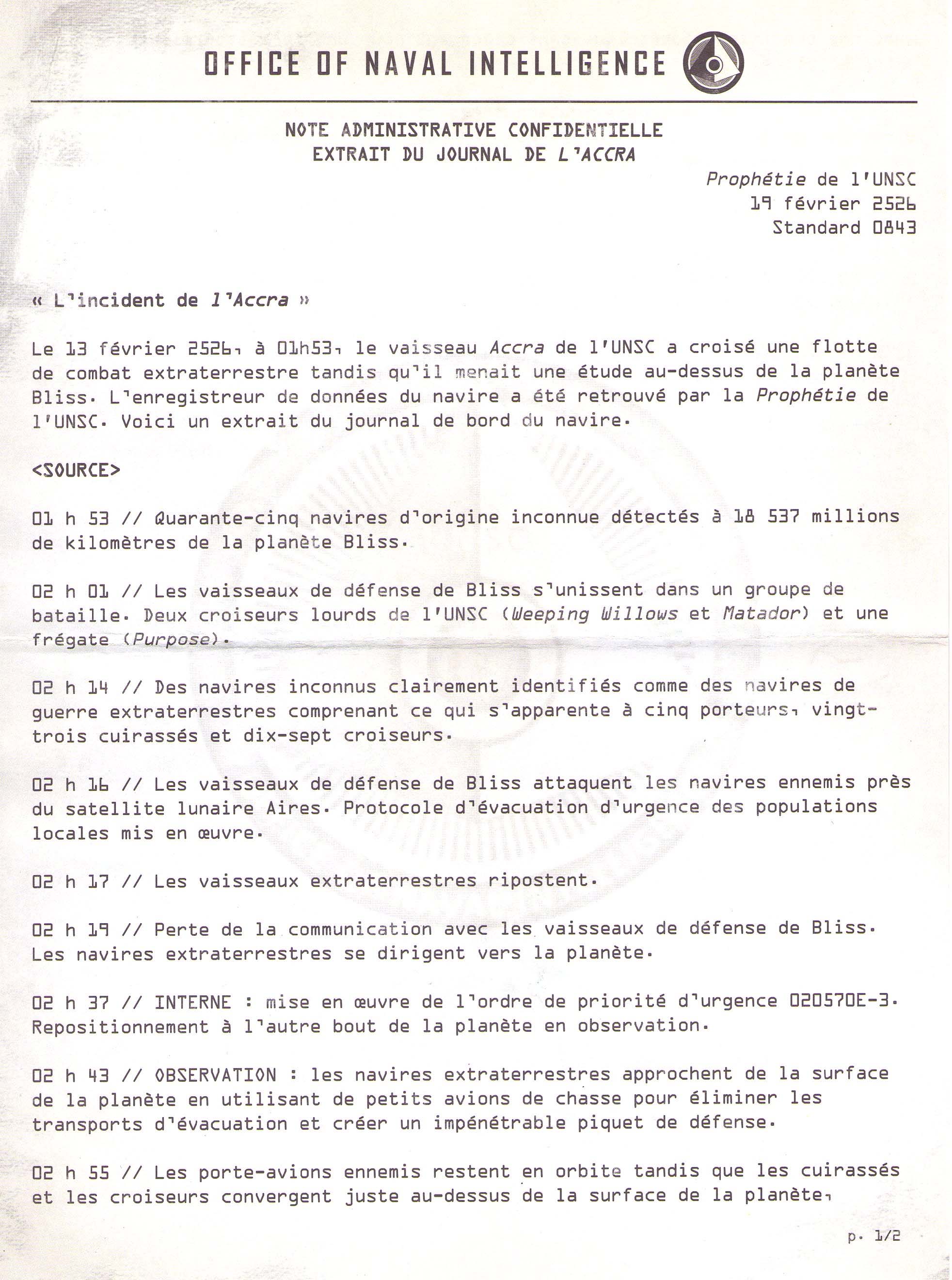 Scan du journal de bord de l'UNSC Accra |