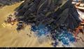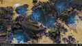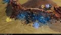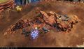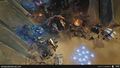 ''Des [[Hornet]]s survolent un [[Scarab]] bloqué dans le sol, protégé par un dôme d'énergie.'' | |||