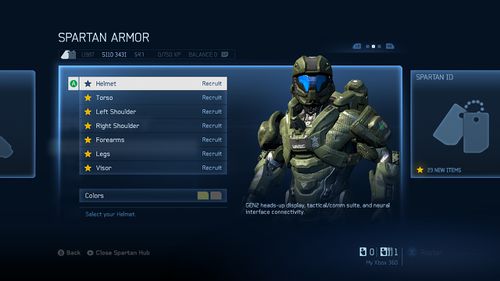 All Spartan-IVs start out with the same Recruit look. As you rank up, this is reflected in the look of your Spartan, which is visible to other players in gameplay and every Multiplayer lobby.