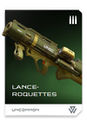 - Ad Victoriam (Rare) : Lance-roquettes amélioré tirant 2 missiles supplémentaires sur une trajectoire en V à chaque coup. Les 3 missiles peuvent être guidés par laser lorsque la visée intelligente est activée et comprennent un détonateur de proximité à explosion aérienne.