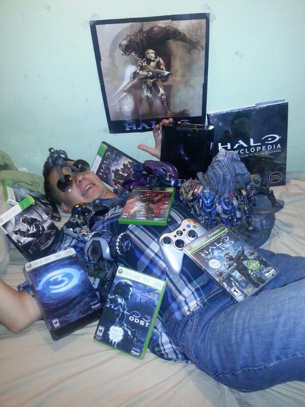 "Tweet: [1]: Why can't I hold all this @Halo? #ChiefSelfie"