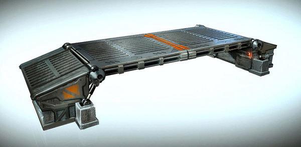 "This vehicle access bridge is a common addition to the UNSC’s Spartan training grounds, located on various worlds across the galaxy. Inspired by the rugged, utilitarian design of deploy-able, reinforced bunkers and forward bases, these bridges are constructed to withstand the harshest of UNSC training settings."