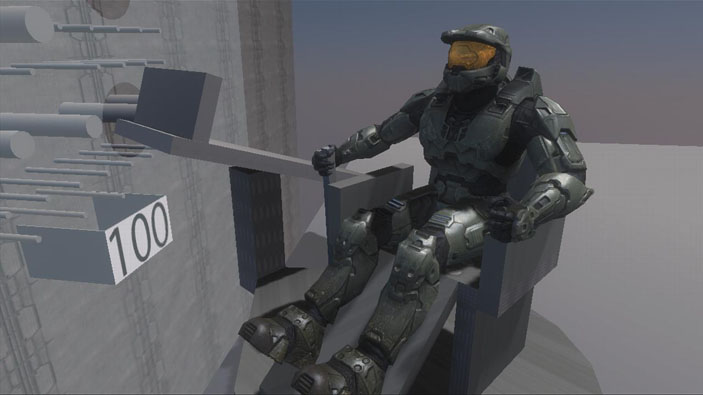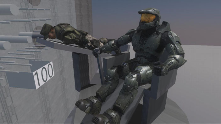 One of our engineers, Graham, is testing some new animation tech and techniques (for various future projects) and decided to mess around with some of the models from Halo 3. Naturally, when testing kinematics and physics for human bodies, the best and most convenient test scenario is an elaborately cruel Human Pach1nko Parlor.
