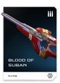 • Sang de Suban (Blood of Suban) (Rare) : Le génie des armuriers de Suban n'ont d'égal que leurs récents accès de cupidité. Carabine perfectionnée tirant des cristaux de Needler. Si plusieurs projectiles atteignent la cible dans un court intervalle, ils génèrent une explosion supercombinée.