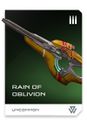 • Déluge de l'oubli (Rain Of Oblivion) (Spéciale) : Le Déluge de l'oubli est passé entre les mains d'un millier de héros et de centaines de criminels. Carabine améliorée entièrement automatique équipée d'un chargeur à la capacité accrue.