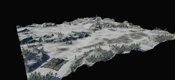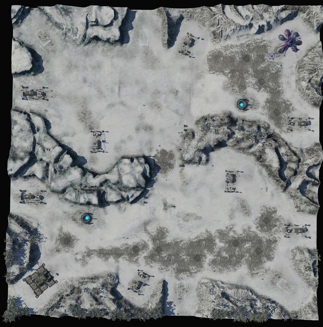 Designer Notes Justin Rouse, a skirmish map designer, dishes out some info on Frozen Valley: Frozen Valley was the first 3v3 map designed during the development of Halo Wars. After Chasms, this was probably our most played map through internal playtesting. The layout went through one major tweak throughout development and that was the opening down between the teams that runs along the bottom edge on picture shown here. The first iteration had the hole as well as the mount near that bottom edge of the map extend all the way to the edge. Leaving a pocket only access through the middle by land units. It allowed the two bottom player on each team to build up safely.