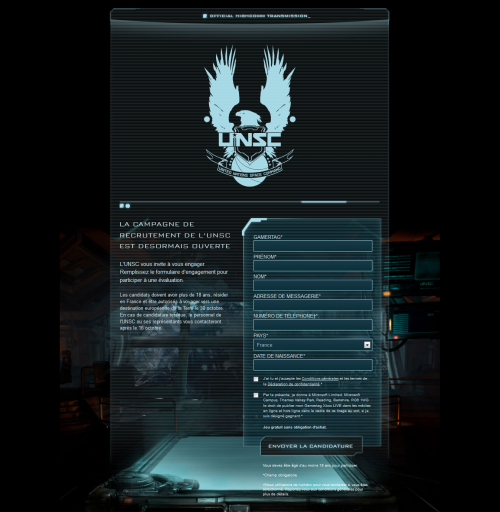 La page du recrutement, https://www.xboxcompetition.com/halo4-enlistment/landing-page/fr-fr.html, resta ouverte jusqu'au 12 octobre.