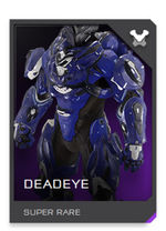 Deadeye est une variante de l'armure Mjolnir GEN2 construite par Hannibal Weapon Systems et testée contre des drones[2] dans un vaste cimetière de vaisseaux créé par les Covenants en orbite au-dessus du pôle Nord de Tribute. Elle est optimisée le repérage longue distance de cibles dans des environnements où un tel repérage est difficile[1] et pour les snipers. La combinaison est pour cela équipée de brouilleurs de communication, d'un système de recyclage des déchets interne robuste et de respirateurs,[3] mais reste efficace à courte et moyenne portée. Elle est rarement utilisée mais remplit parfaitement son rôle d'assistance au tir à très longue portée grâce à son logiciel de calibration mouvement-distance.[2] Chaque casque contient un fragment d'alliage issu du cimetière de vaisseaux de Tribute.[4]