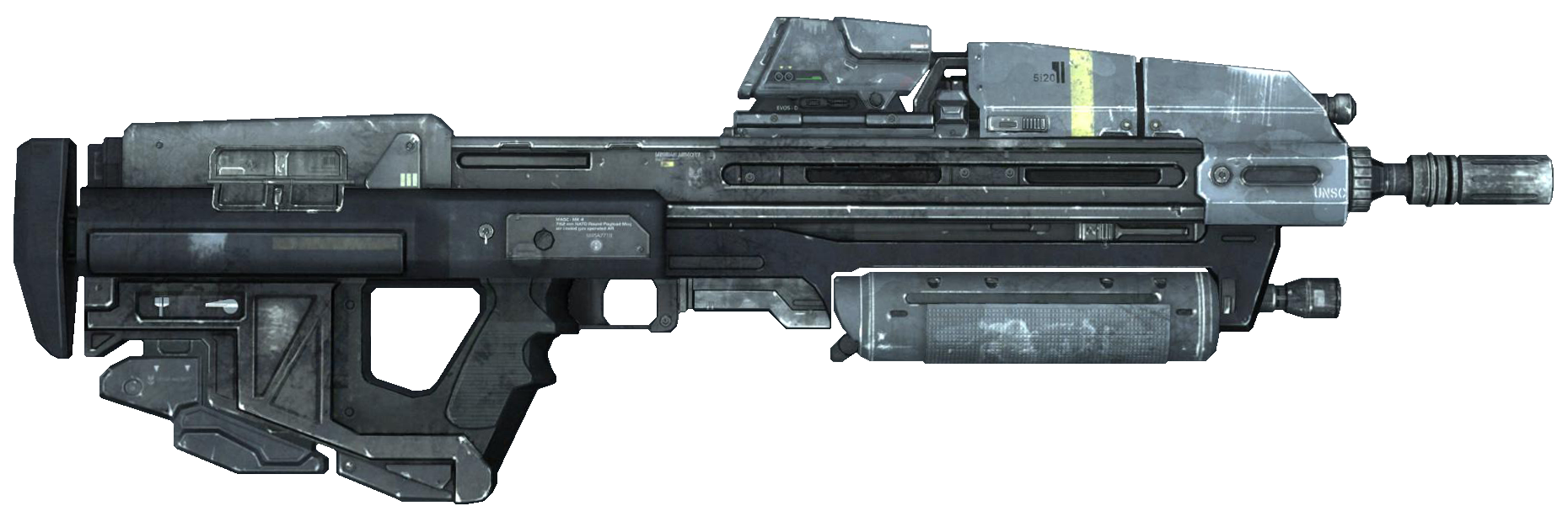 Le MA40 est la version du fusil d'assaut présente dans Halo Infinite.[21] Il s'agit d'une version améliorée des MA5 et du MA37 de la guerre contre les Covenants, utilisée dans l'après-guerre comme arme standard par les Marines et l'Army.[6]