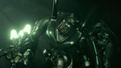 Individual Lekgolo eels can vary dramatically in length, girth, and weight. Although the Covenant uses individual Lekgolo eels for a number of purposes, the most commonly encountered colony form is that of Mgalekgolo (Hunters). A single Mgalekgolo colony is generally comprised of two “gestalt beings,” each weighing several thousand kilograms and designed to engage in a form of physical combat closely approximated to hunter-killer formations, hence their name. The Covenant further augmented this colony type by heavily arming and armoring the creatures to be even more formidable in combat.