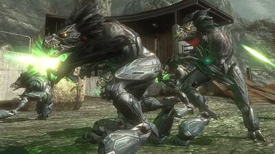 | « | The Sangheili are a proud warrior race of biped saurians who once served as the enforcers of the Prophets, but now chart a new destiny among the stars. —