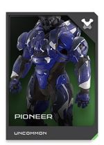 Pioneer est une variante de l'armure Mjolnir GEN2 construite par Acheron Security et testée à Gdynia, dans la région d'Acheron Fossae sur Mars. Elle est conçue pour endurer des environnements méconnus et potentiellement hostiles, et utilise une mitigation de ses inhibiteurs pour augmenter ses performances. Elle est principalement utilisée par les groupes expéditionnaires de l'ONI[2] et a notamment été employée au cours des missions d'exploration initiales sur le Halo Gamma.[3]