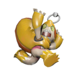 - ↑ Le porte-bonheur est un bouclier grecque nommé Aspis prenant la forme d'un gant d'énergie.